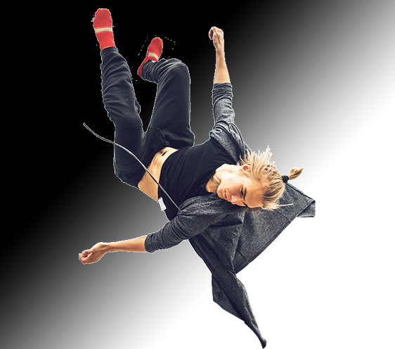 Trainiere Saltos und Flickflacks auf der 10 Meter langen Trampolinfläche.
